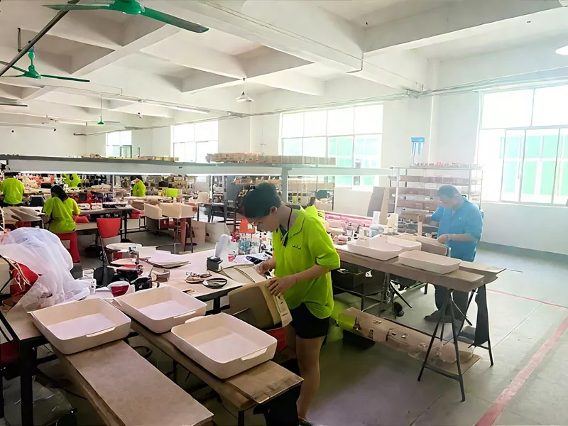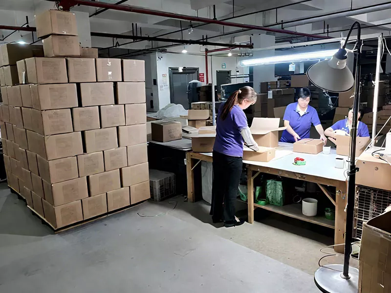 पैकेजिंग और शिपिंग को सुविधाजनक बनाने के लिए, हमने डोंगगुआन में अपने मुख्यालय के पास अपना पैकेजिंग सेंटर स्थापित किया है। यह केंद्र ग्लास कैंडलहोल्डर्स और डिफ्यूज़र जैसी नाजुक वस्तुओं के लिए पैकेजिंग समाधानों में माहिर है। हम कस्टम बॉक्स और लाइनिंग बना सकते हैं, और हम परिवहन के दौरान उनकी सुरक्षा सुनिश्चित करते हुए, ग्लास डिफ्यूज़र और सजावटी सिरेमिक जैसी वस्तुओं की सुरक्षा के लिए पर्यावरण के अनुकूल सामग्री का उपयोग करते हैं।