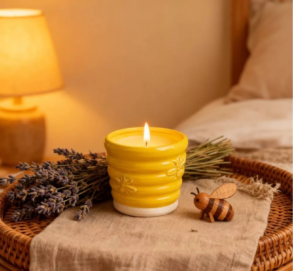बीवाईएफ का बीज़वैक्स सिरेमिक कैंडल जार मधुमक्खियों और सिरेमिक के बीच एक मधुर मुठभेड़ है। हमने इस जार के गोल-मटोल शरीर को नरम, चिकने सिरेमिक से ढाला है, इसे जीवंत मधुमक्खी की आकृतियों और छोटे फूलों से सजाया है - जैसे कि उन्होंने अभी-अभी अमृत एकत्र किया हो और मोमबत्ती की रोशनी में आराम कर रहे हों। जब मोमबत्ती जलाई जाती है, तो प्रकाश का प्रभामंडल शहद जैसी चमक से छनकर दीवार पर लहराती छाया डालता है, और पूरे कमरे में एक गर्म छोटी कविता फुसफुसाती है।
