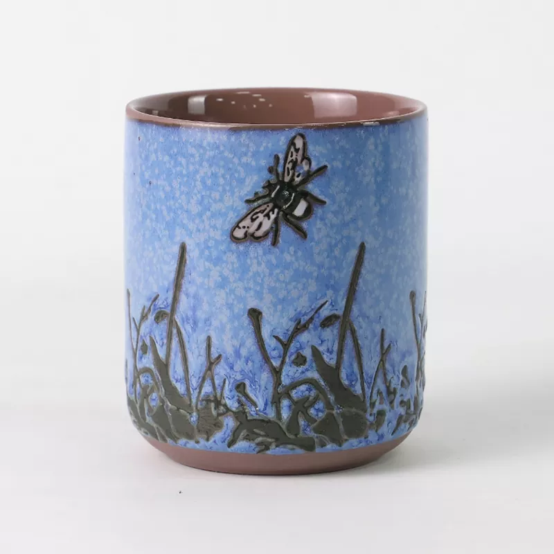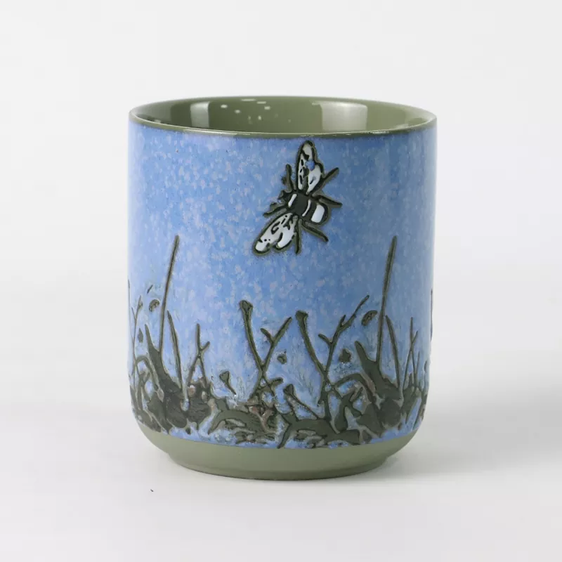 कीट-पैटर्न सिरेमिक कैंडल होल्डर श्रृंखला "कॉर्डिसेप्स सिम्बायोसिस" की प्राकृतिक कल्पना से प्रेरणा लेती है, जो शास्त्रीय पूर्वी सौंदर्यशास्त्र के सार और तारों वाले आकाश की रहस्यमय सुंदरता को दर्शाती है। यह हाथ से पेंट की गई अंडरग्लेज़ सजावट के साथ उच्च तापमान वाले भट्टी-चालित ग्लेज़ को मिश्रित करता है, दर्जनों समायोजन और सुधारों से गुजरते हुए अंततः तीन हस्ताक्षर रंग बनाता है: स्टारी नाइट ब्लू, मिस्टिक ग्रीन और डीप इंडिगो। कप की बाहरी दीवार एक विशाल तारों वाले आकाश की तरह दिखती है, जो बढ़िया सोने के टुकड़ों से छिड़का हुआ है, जैसे कि आकाशगंगा की चमक आपके हाथ की हथेली में रखी गई हो; आंतरिक दीवार एक शुद्ध शीशे का उपयोग करती है, जो दर्पण की तरह स्पष्ट है, जो बाहरी तरफ तारों वाले आकाश की बनावट के साथ एक मजबूत दृश्य विरोधाभास पैदा करती है, जो प्रकाश और छाया के परस्पर क्रिया में सरलता का प्रदर्शन करती है। हाथ से चित्रित तितली, घास के तने और तल पर सिंहपर्णी पैटर्न, अनुभवी कारीगरों द्वारा सावधानीपूर्वक तैयार किए गए, जीवंत और जीवंत हैं, जो जीवन के चक्र और प्रकृति के सहजीवन की एक शाश्वत कहानी कह रहे हैं। प्रत्येक कप कला का एक अनूठा काम है, जो प्रकृति के प्रति श्रद्धा और जीवन के उत्सव का प्रतीक है।