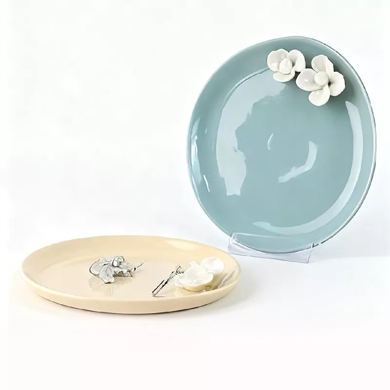 मिनिमलिस्ट इंस्टा सिरेमिक ज्वेलरी डिश चुनने के लिए विभिन्न प्रकार के रंग और फूलों के डिज़ाइन प्रदान करता है।
